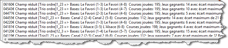 Ces stratégies-là permettent de jouer pratiquement tous les chevaux (de façon rentable) et de réduire l'écart. Un simple exemple, sur des centaines: